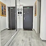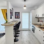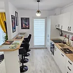 A fully furnished kitchen is equipped with tea and coffee-making facilities, as well as a microwave oven, a refrigerator, and kitchenware for self-catering purposes. Ioan Socec bus stop is just moments from Mountain Vibes Apartment.